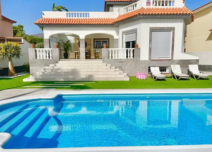 Situada a 10 minutos de carro do Parque Aquático Siam Park, Villa Rico Del Sol convida os hóspedes a relaxar num terraço.